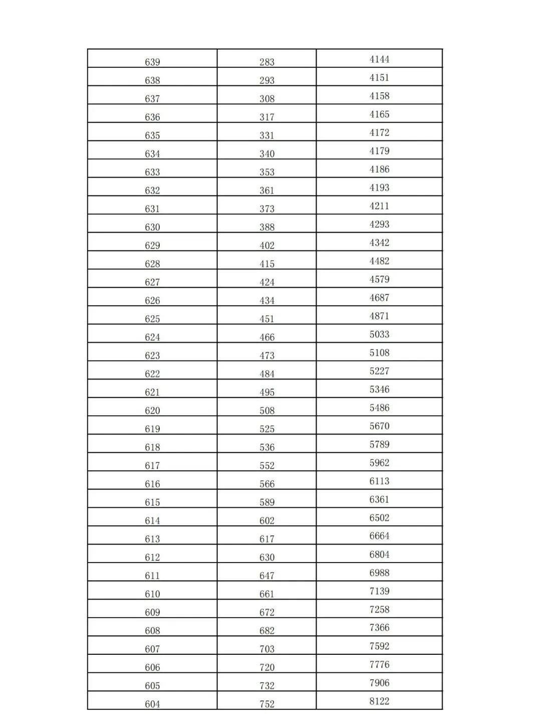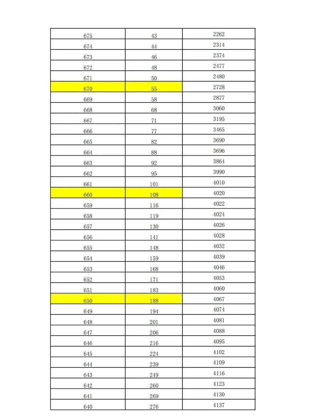 据网传排名分析,一模一本线预计在487分左右,清北录取线预计为680分左右!下面是具体的一分一段表,快来看看你对应的排名吧!