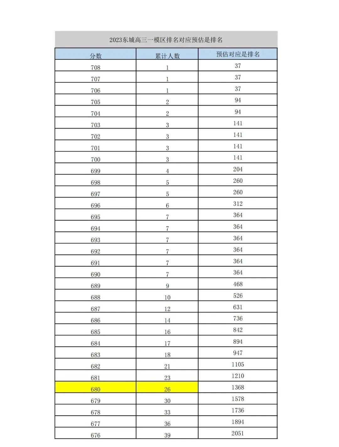 2023北京东城高三一模考试已结束,北京高考在线团队整理了网传东城区高三一模一分一段及对应市排名,分享给大家参考。详情如下: