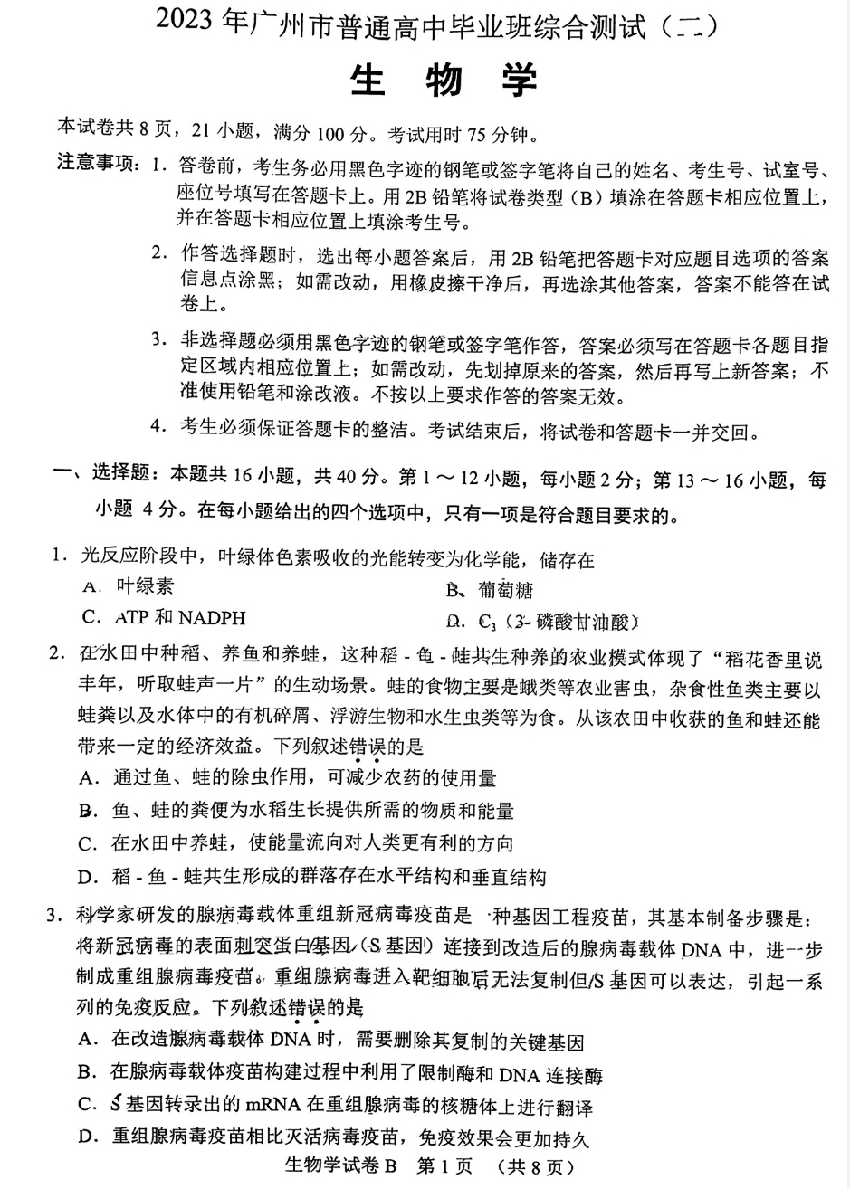 2022年广州二模定于4月17日已开考,为了方便大家查找相关试题,北京高考在线团队为大家整理本场考试生物科目的试题及答案,仅供下载练习!