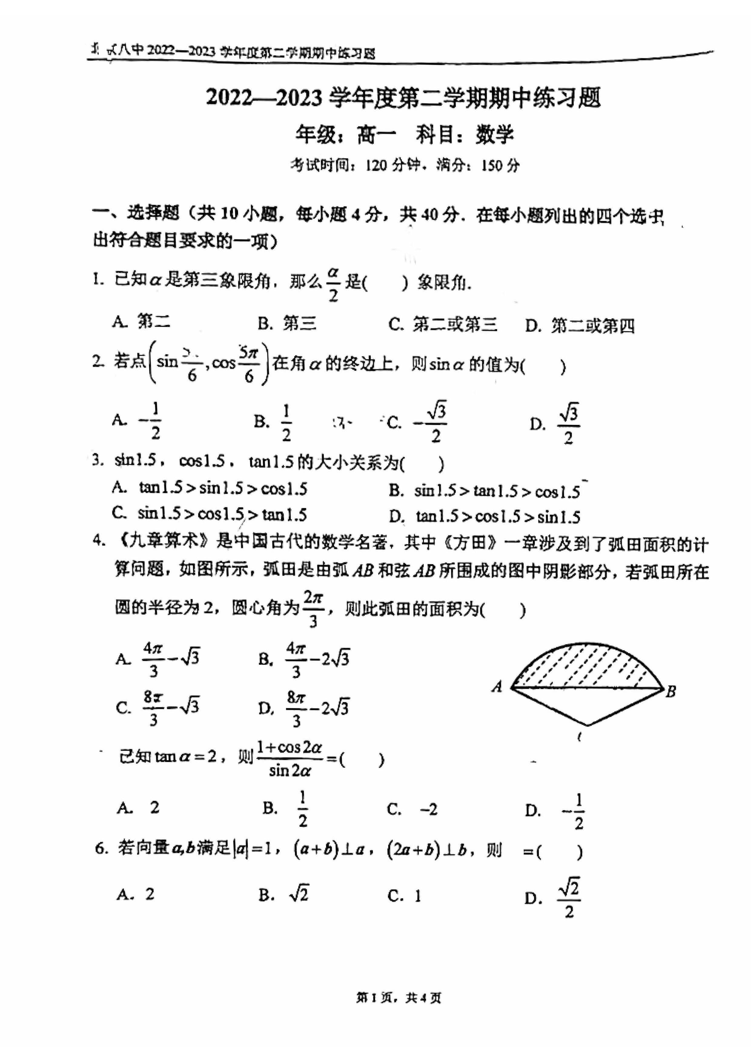 2022-2023学年北京各区高一年级下学期期中考试已开始,北京高考在线团队整理了北京八中高一(下)期中数学试题及答案,供同学们在线下载!