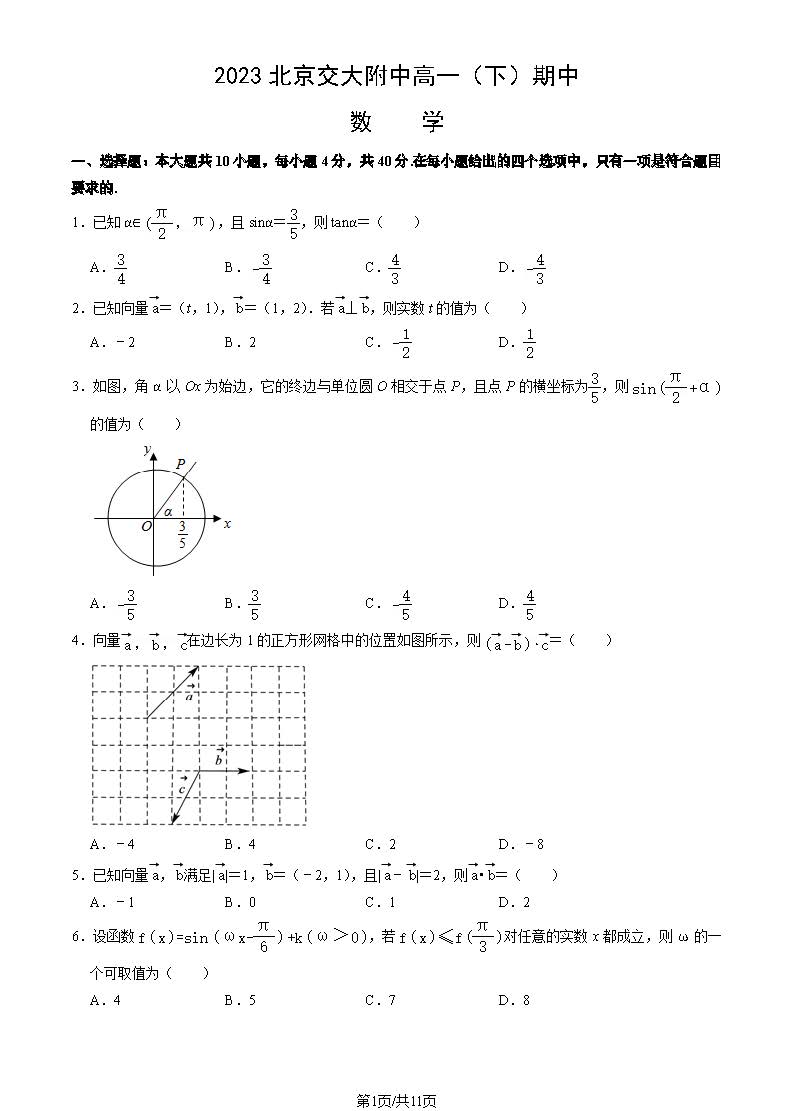 2022-2023学年北京各区高一年级下学期期中考试已结束,北京高考在线团队整理了北京交大附中高一(下)期中数学试题及答案,供同学们在线下载!