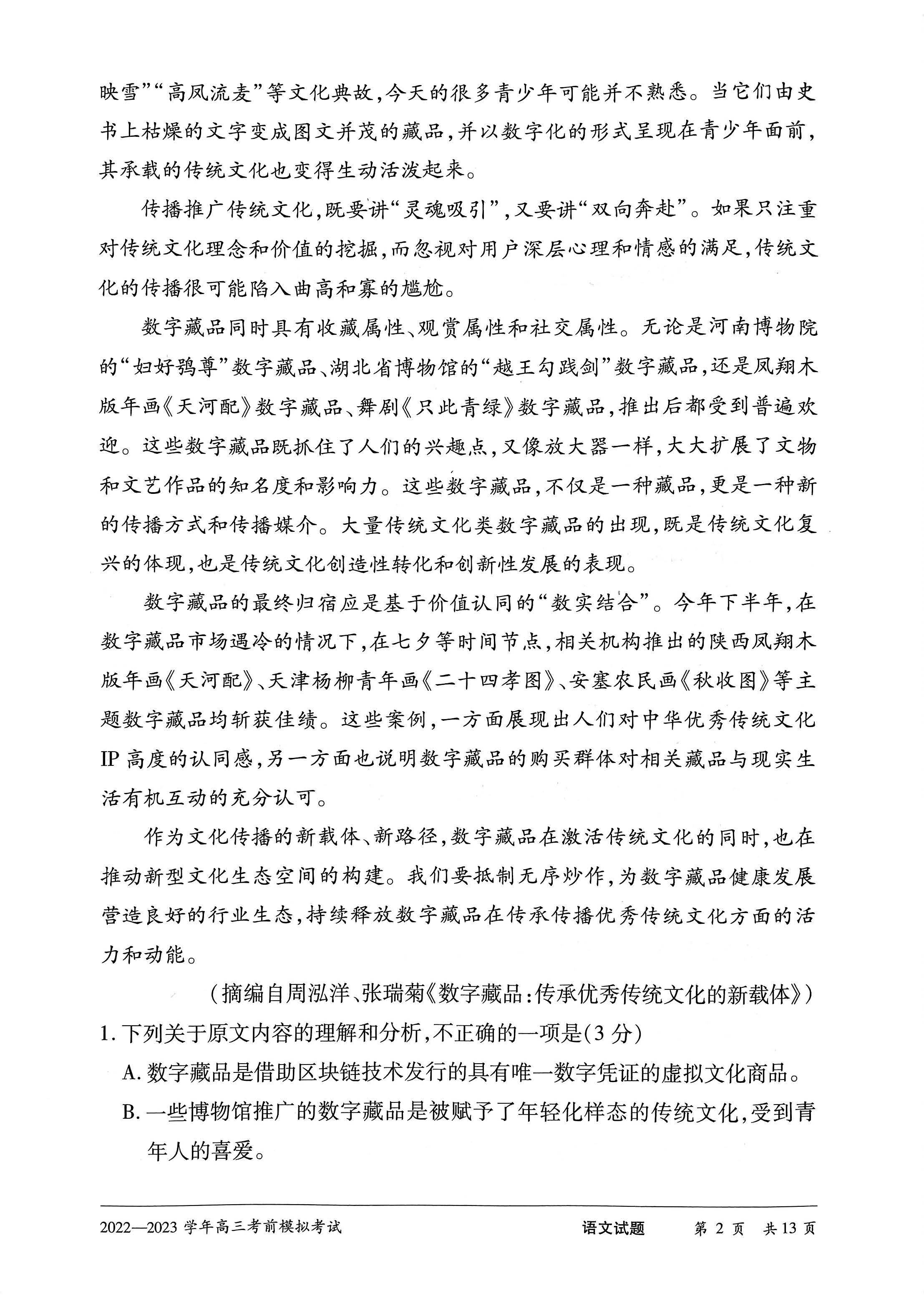 2023河南天一大联考高三下学期考前模拟语文试题及答案