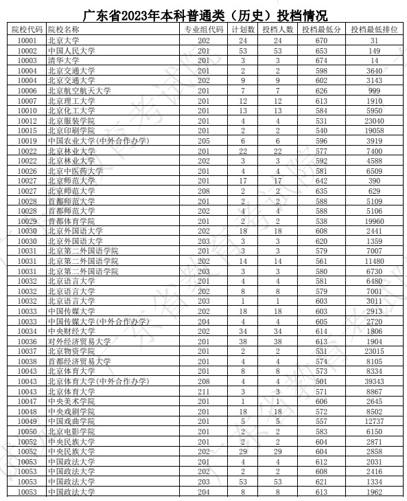 2023年广东高考本科普通类投档,7月19日,我省本科批次普通类正式投档,共投出普通类考生273025人。为了方便同学们了解投档情况,北京高考在线团队特意整理了本科普通类(历史组)投档分数统计,详情如下: