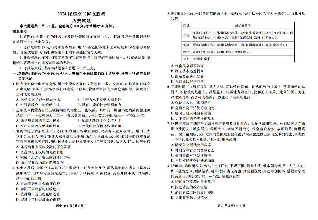 广东开学联考:2024年广东新高三开学联考试题及答案汇总