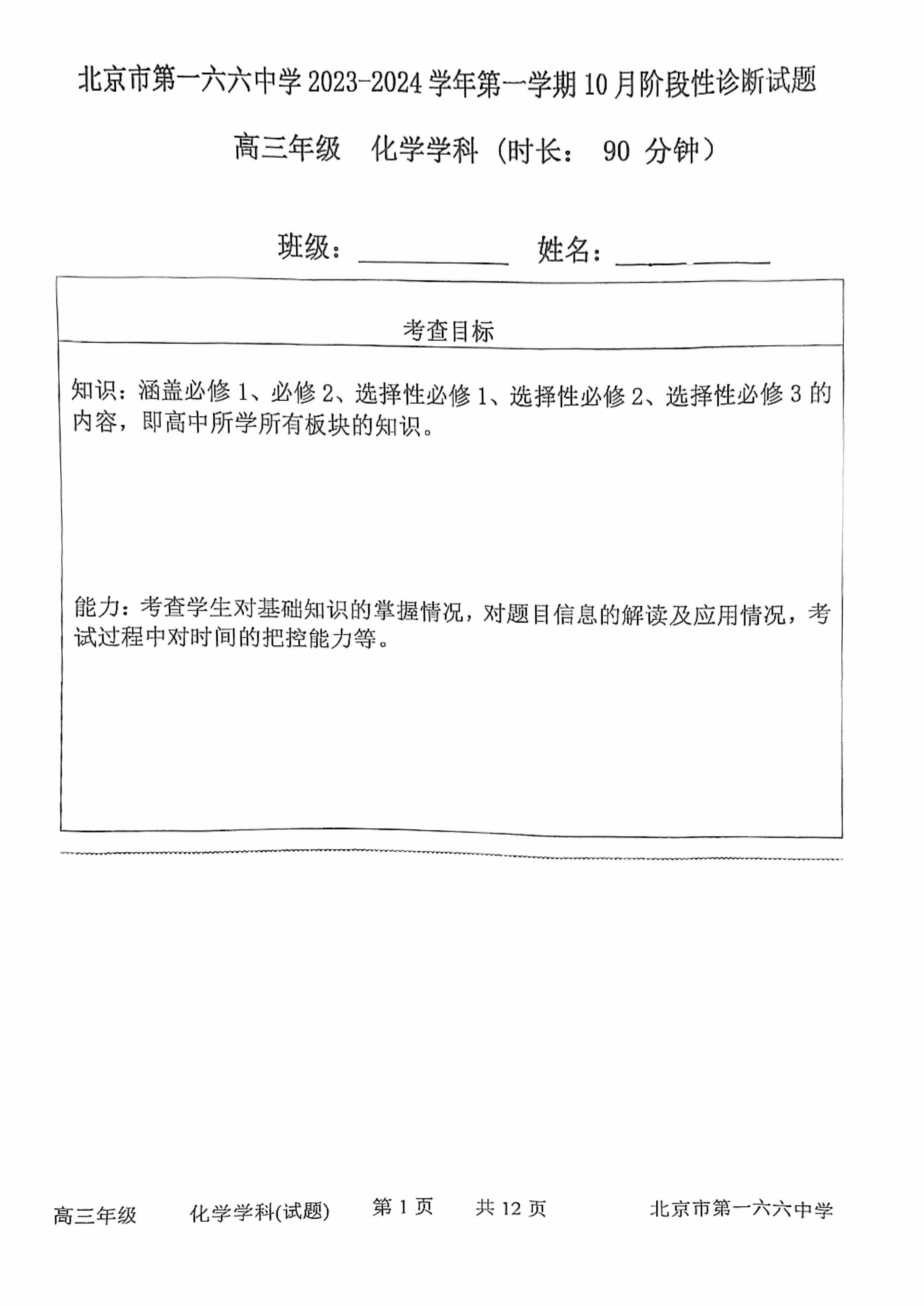 北京各中学高三会定期进行月考考试,月考试题是考生重要的复习资料,北京高考在线整理了北京一六六中高三2023年10月月考化学试题及答案,供考生参考。