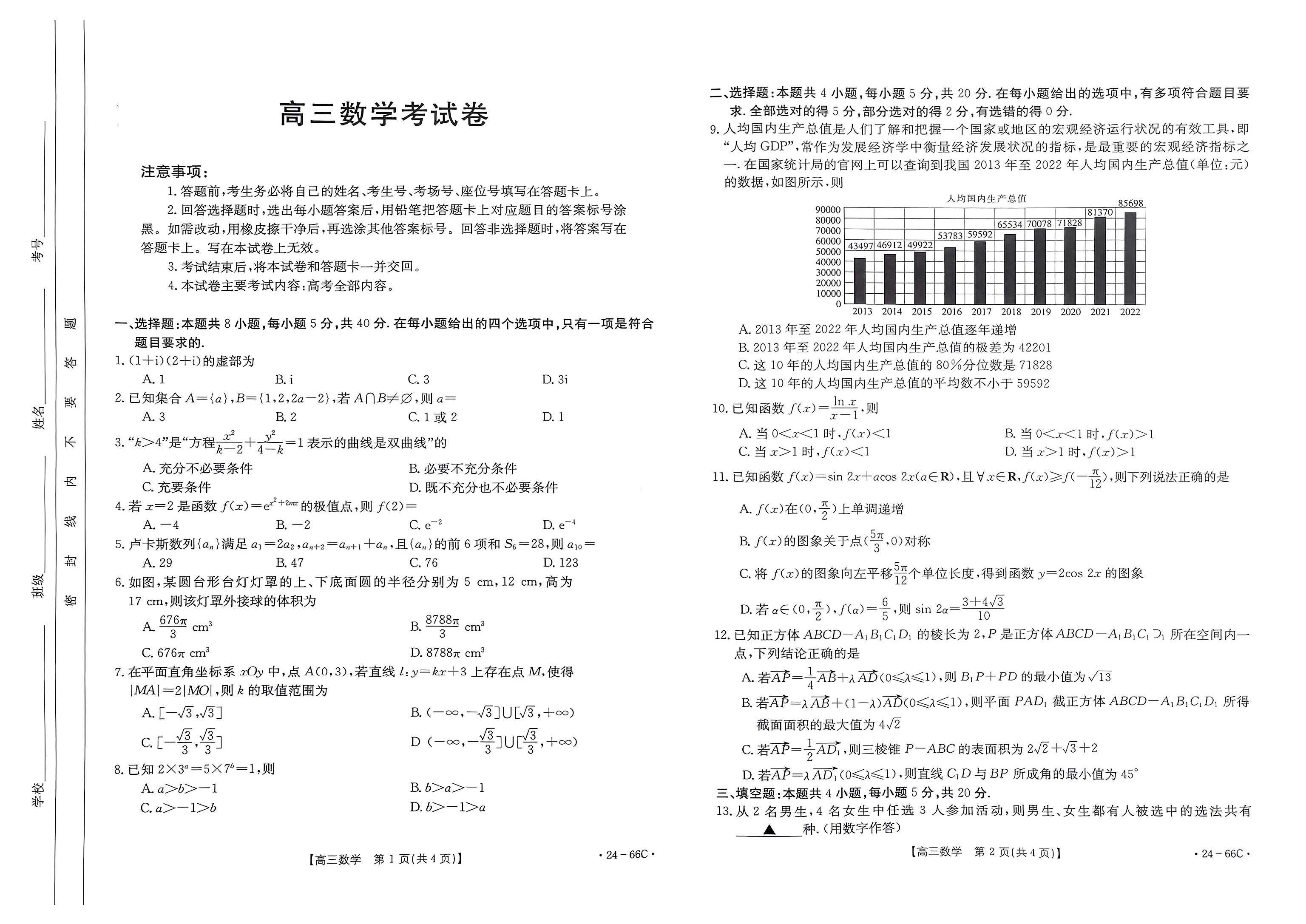 立即下载:2024届云南金太阳高三10月联考数学试题(24-66C)