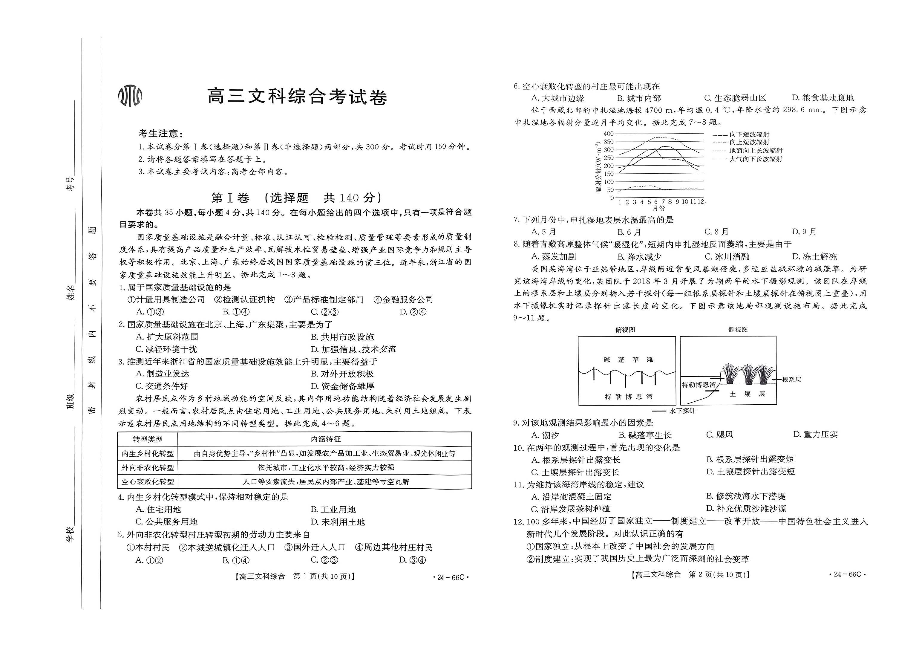 立即下载:2024届云南金太阳高三10月联考文综试题(24-66C)
