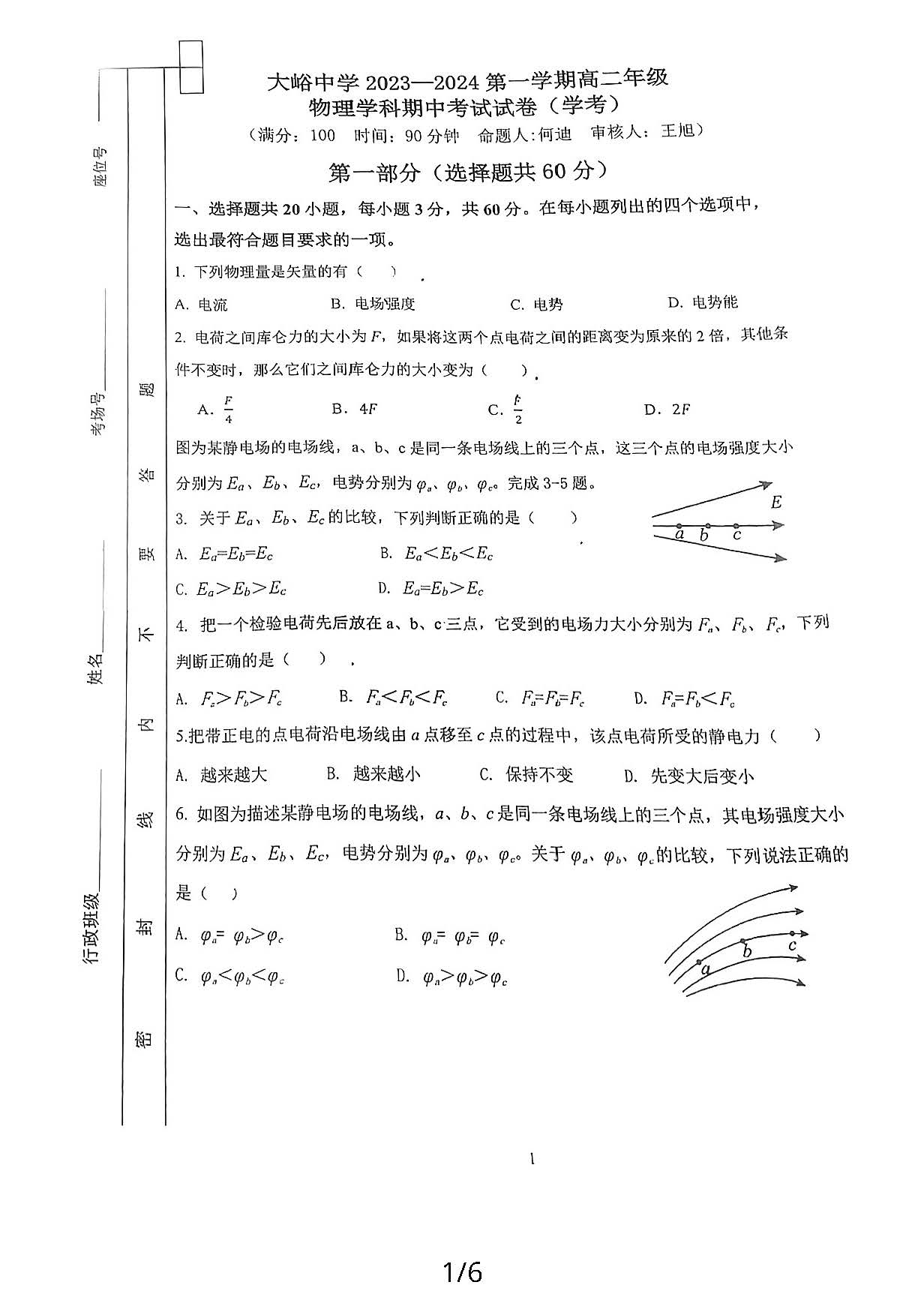 2023-2024学年北京高二年级期中考试已结束,为了方便同学们查找试题,北京高考在线团队整理了大峪中学高二(上)期中物理试题、答案,提供给大家下载练习!