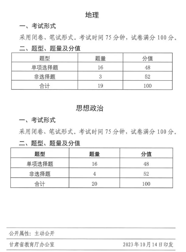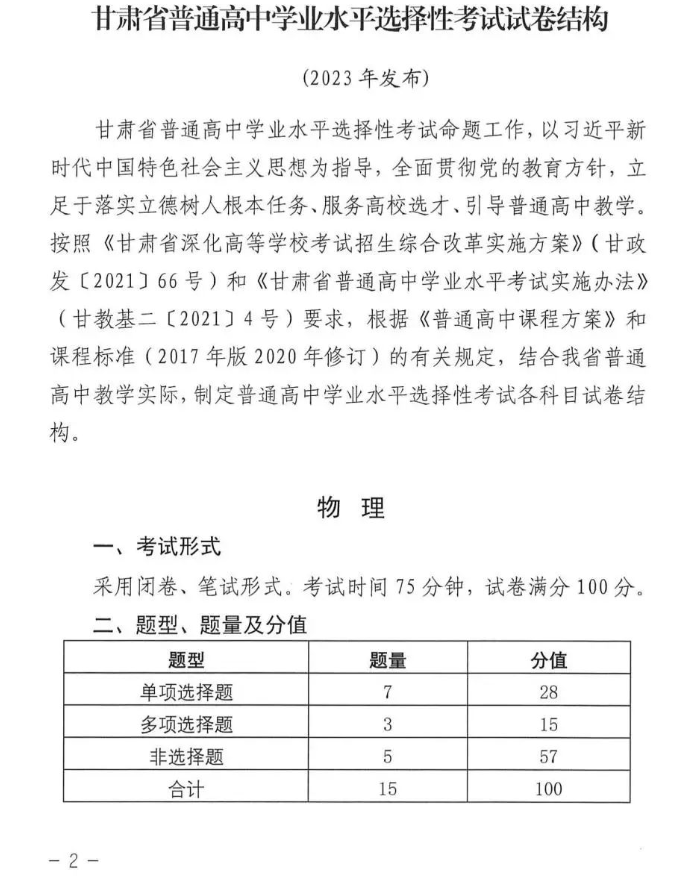 新高考7省发布了《普通高中学业水平选择性考试试卷结构》,这些由省内自主命题进行考试的省份,2024年将怎么考,题量分值有何变化?本文整理了甘肃省普通高中学业水平选择性考试试卷结构,供大家查看。