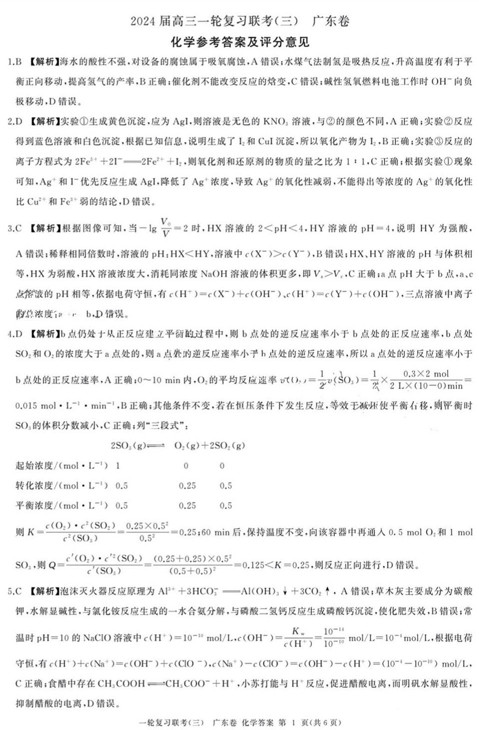 联考题是考生重要的复习参考资料,为帮助大家练习,核对参考答案做好试卷分析,本文整理了2024届百师联盟高三11月一轮复习联考(三)化学试题及答案,以下是详细内容。