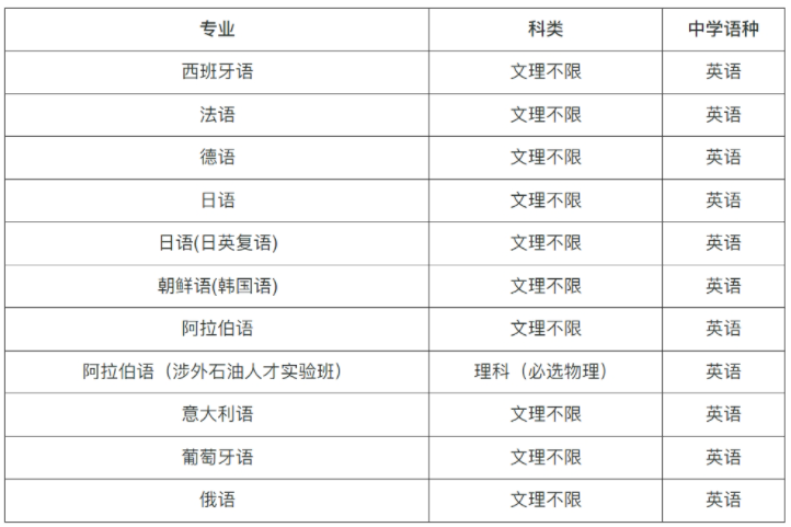 高中阶段均在教育部批准的具有推荐保送生资格的外国语中学就读、具有当年保送生资格、德智体美劳全面发展的应届高中毕业生。