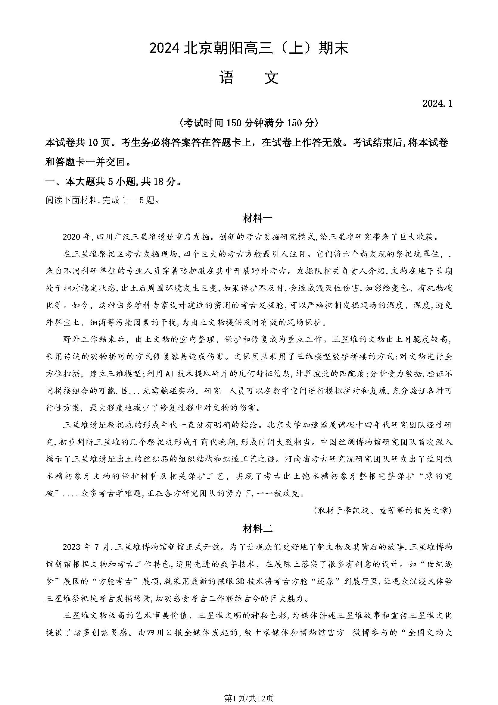 2023-2024学年北京朝阳区高三期末考试于1月17日-19日进行,为了方便同学们查找相关试题、答案,北京高考在线团队特意搜集整理了朝阳区高三期末语文试题及答案,附高清PDF版本,可供下载!