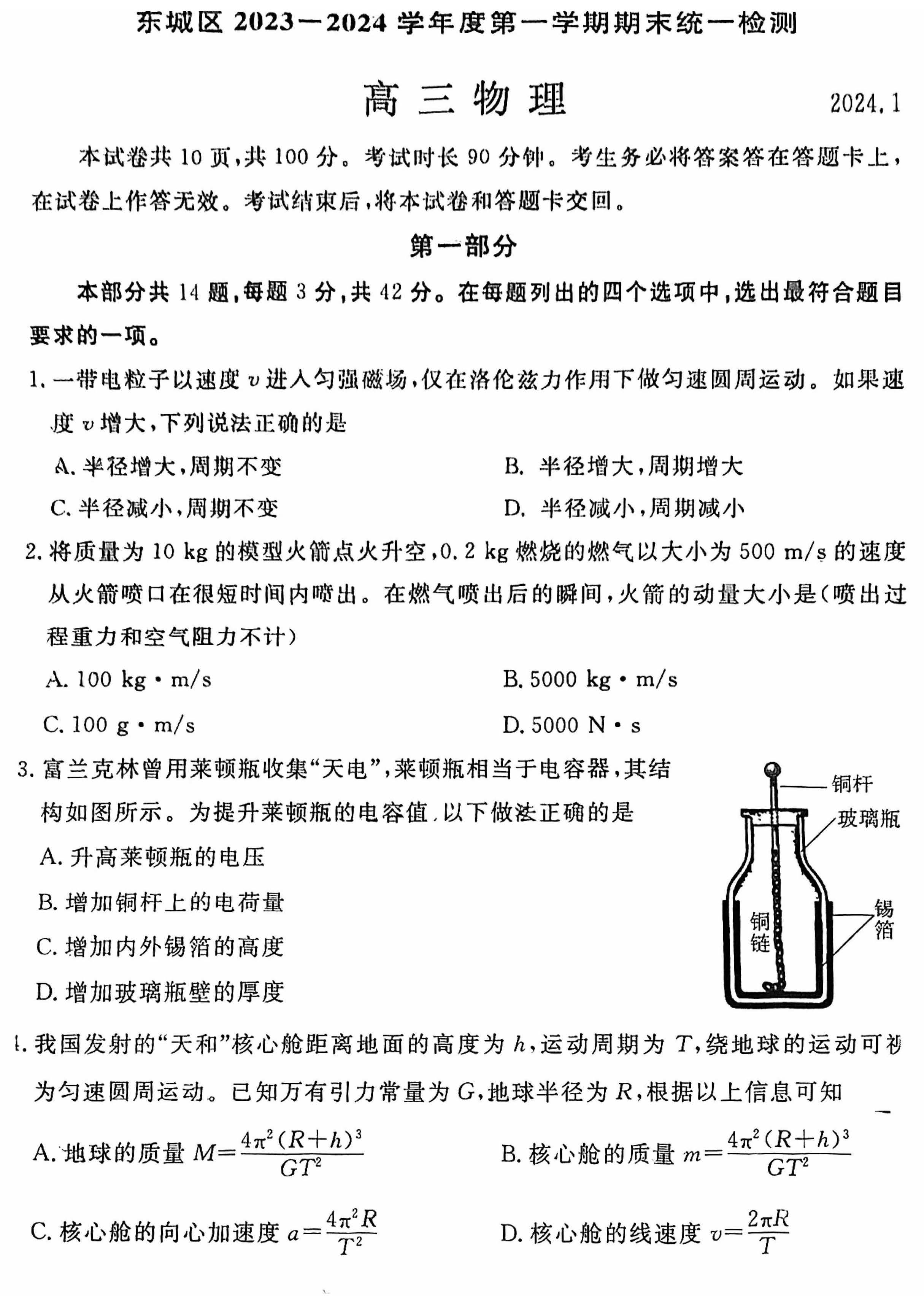 2023-2024学年北京东城区高三期末物理试题及答案