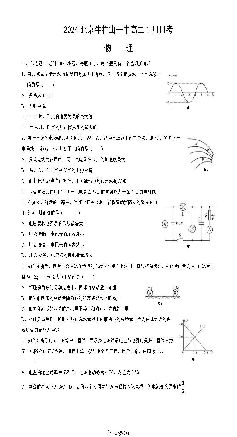 2024北京牛栏山一中高二1月月考物理试题及答案