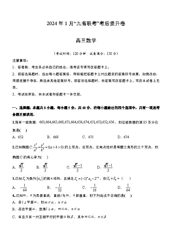 更多试题练习:2024年1月九省联考考后提升卷试题及答案汇总