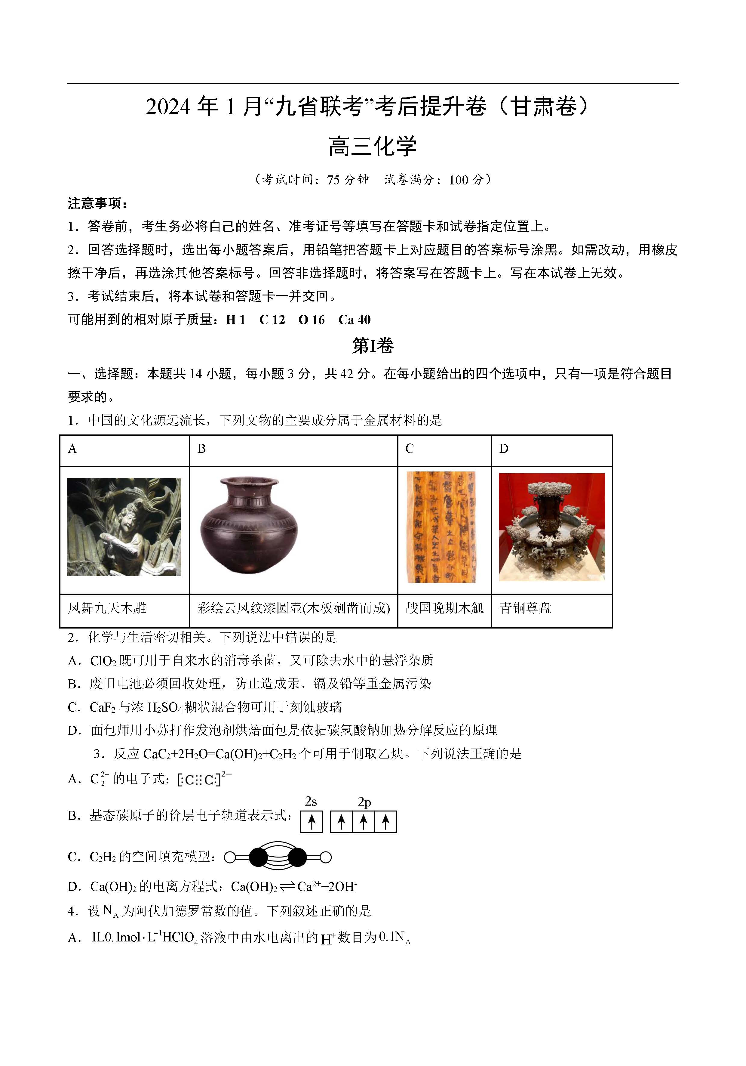 2024年1月九省联考考后提升卷化学试题(甘肃卷)