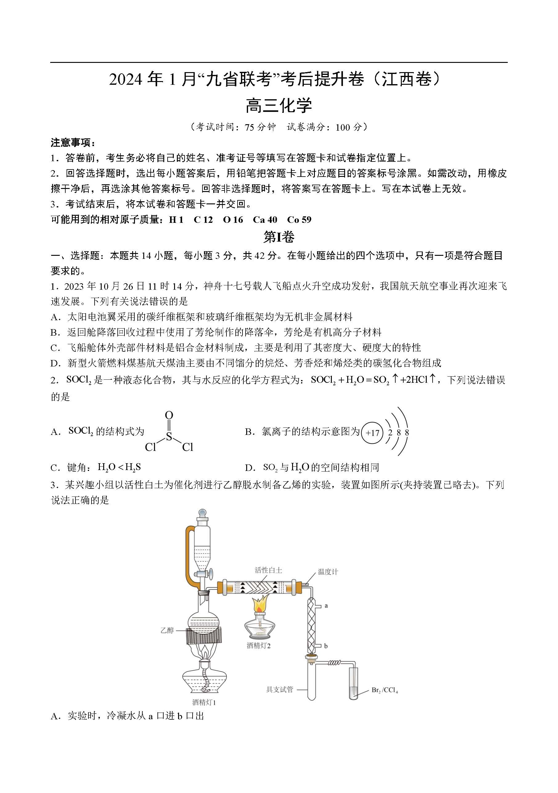 立即下载:2024年1月九省联考考后提升卷化学试题(江西卷)