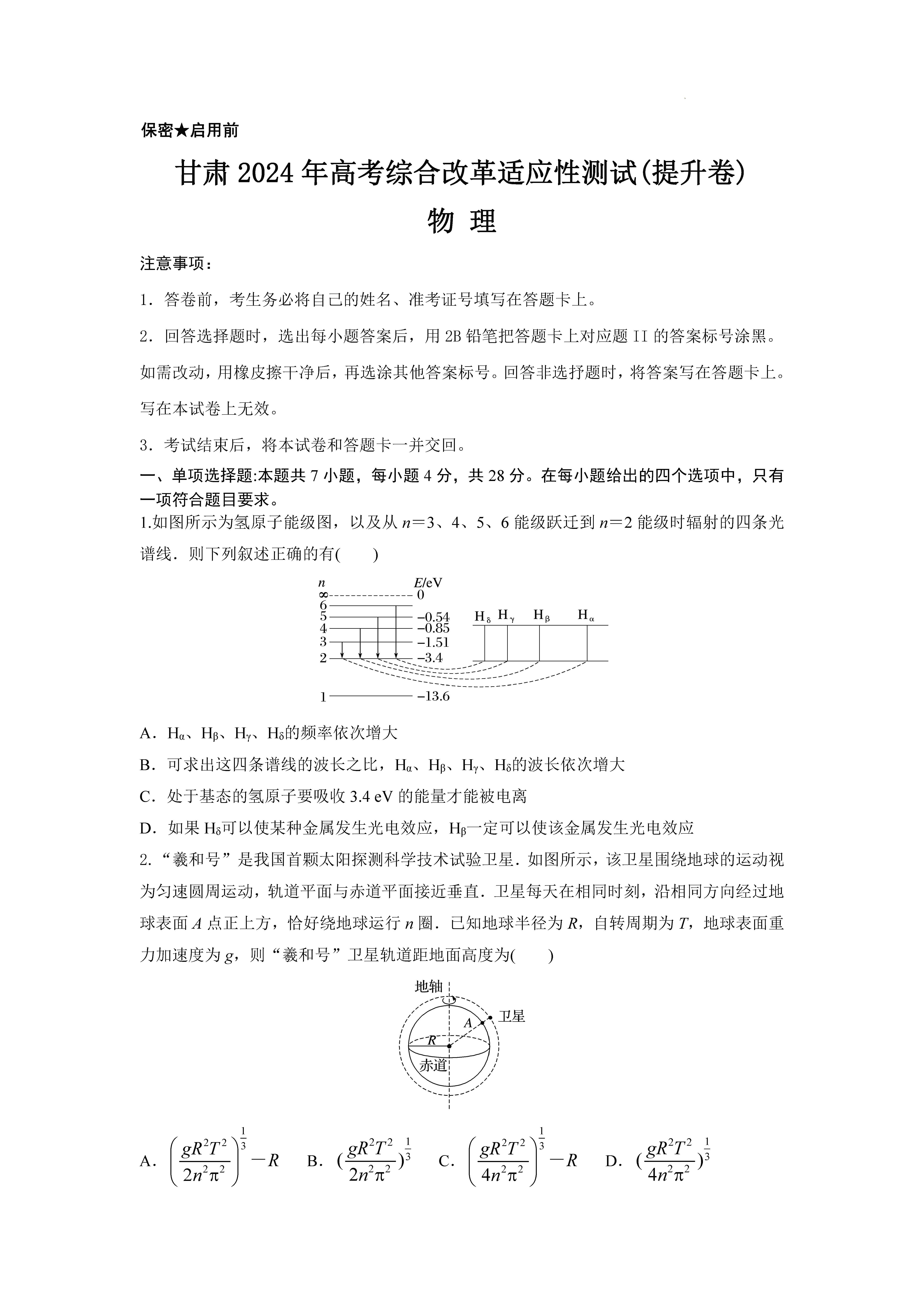 立即下载:2024年1月九省联考考后提升卷物理试题(甘肃卷)
