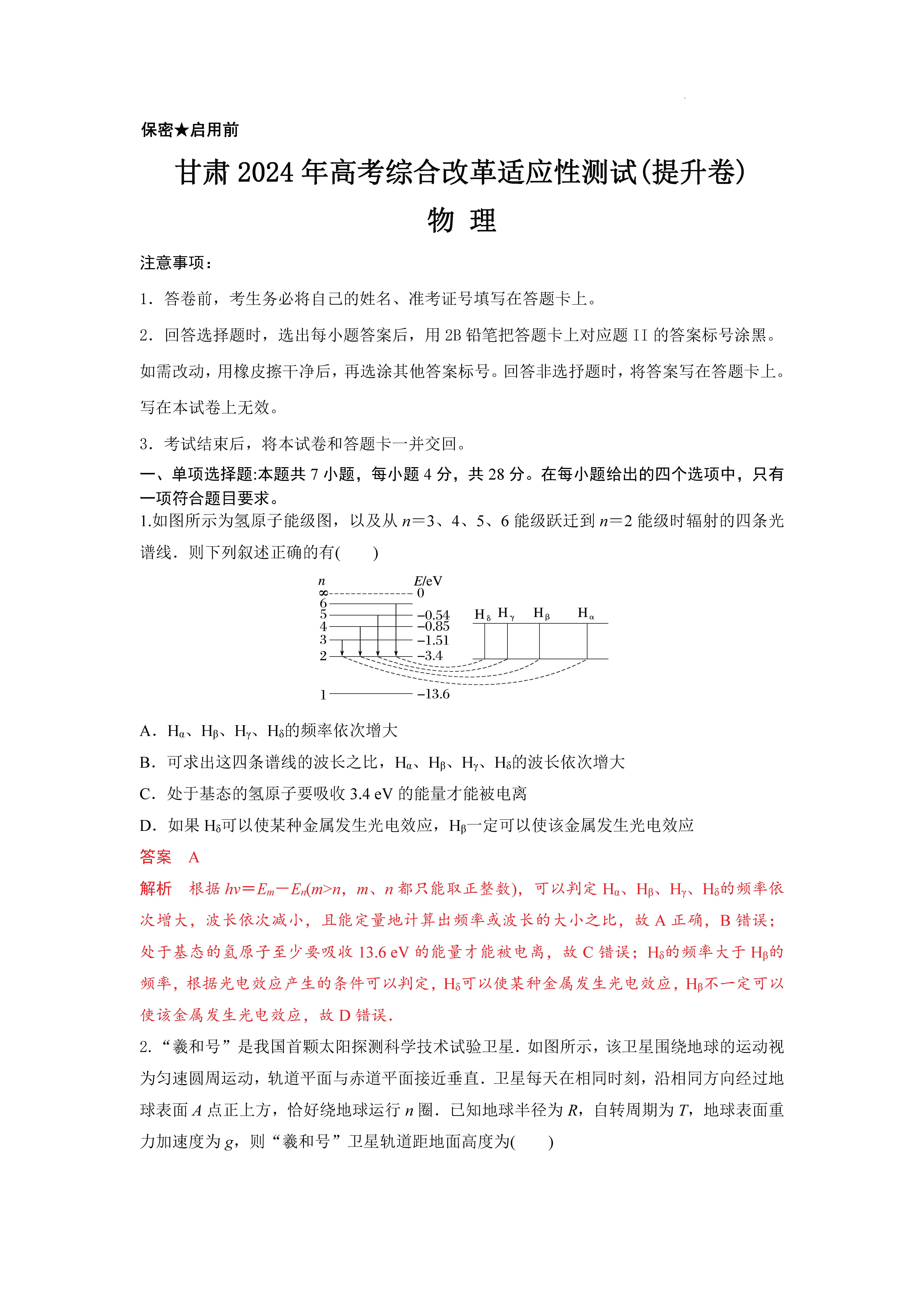 2024年1月九省联考考后提升卷物理答案(甘肃卷)
