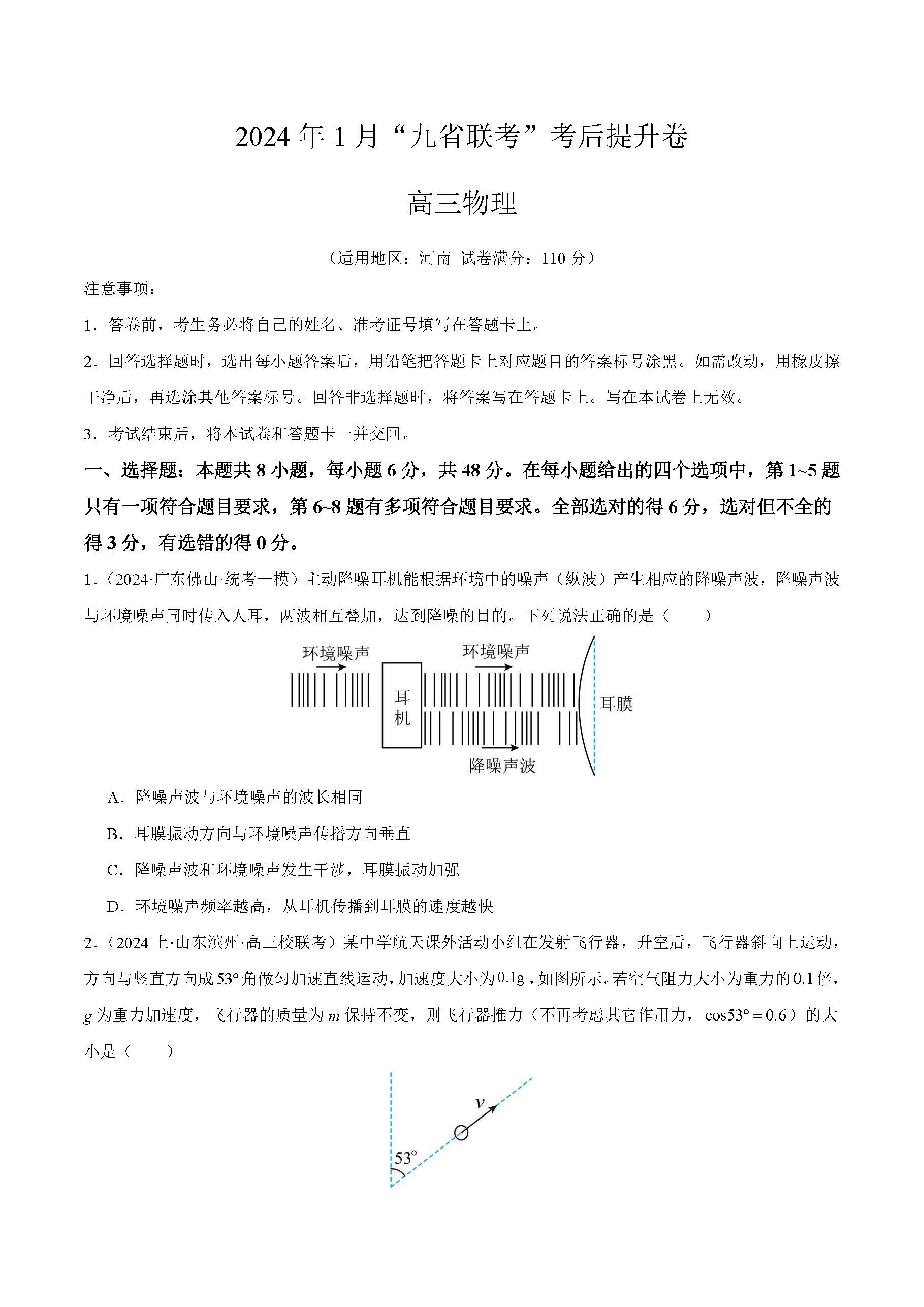2024年1月九省联考考后提升卷物理试题(河南卷)