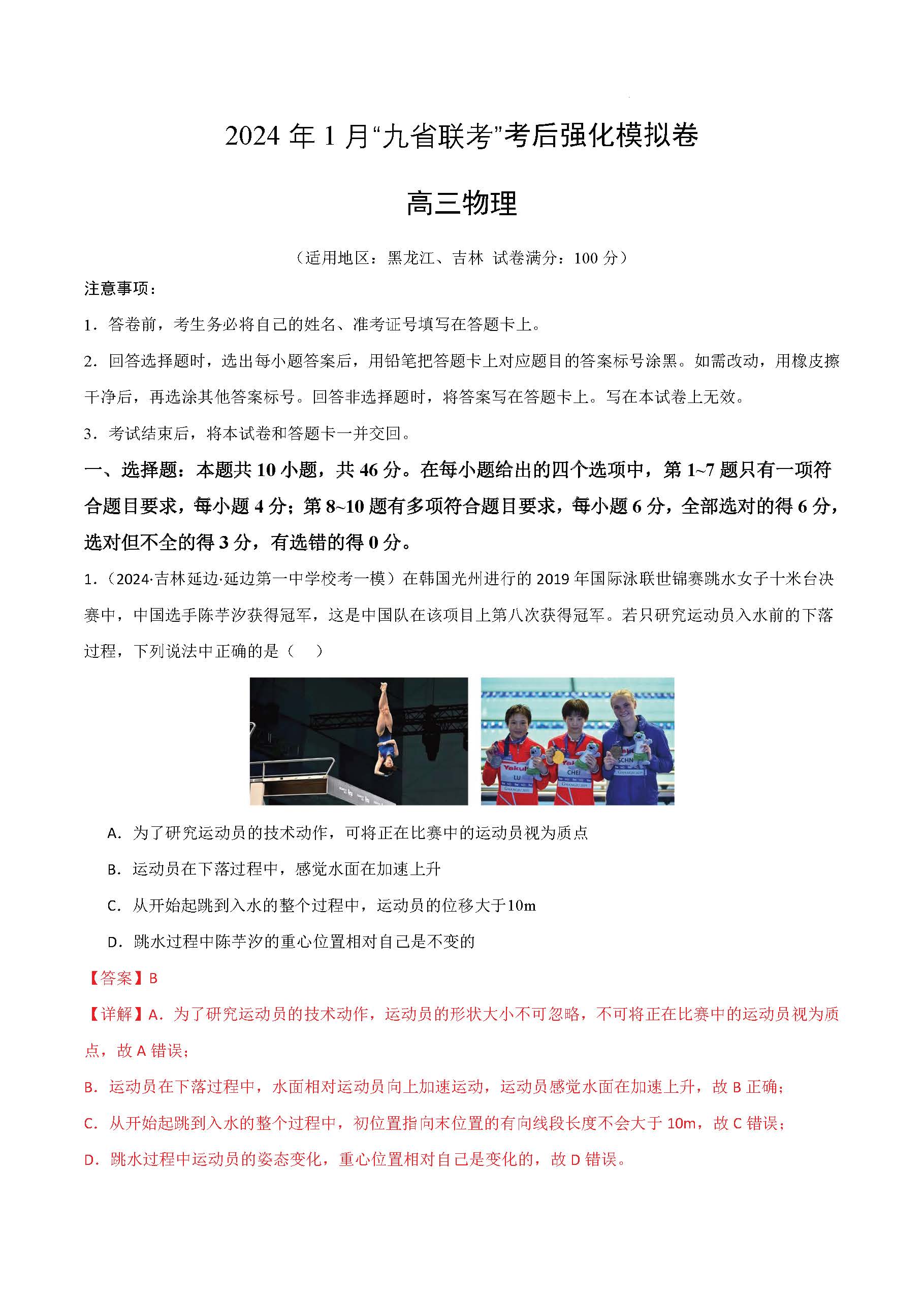 2024年1月九省联考考后提升卷物理答案(吉林、黑龙江卷)