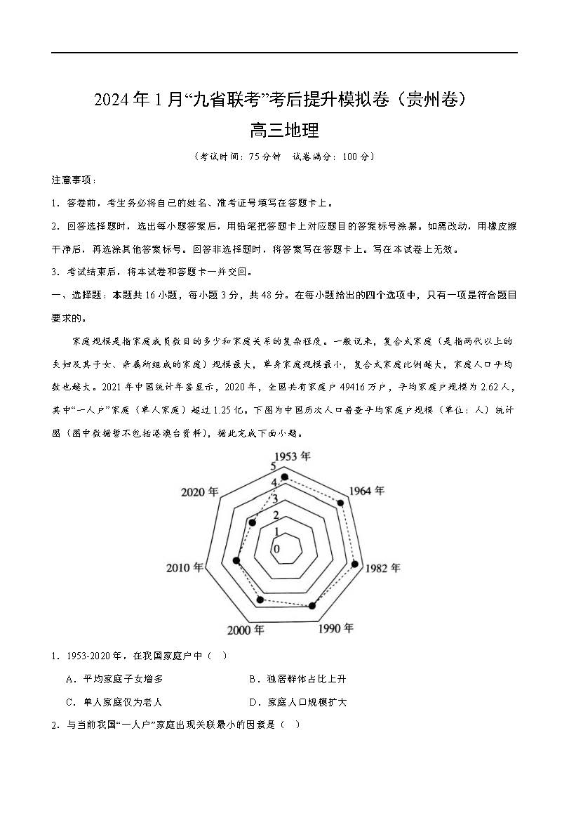 2024年1月九省联考考后提升卷地理答案(贵州卷)