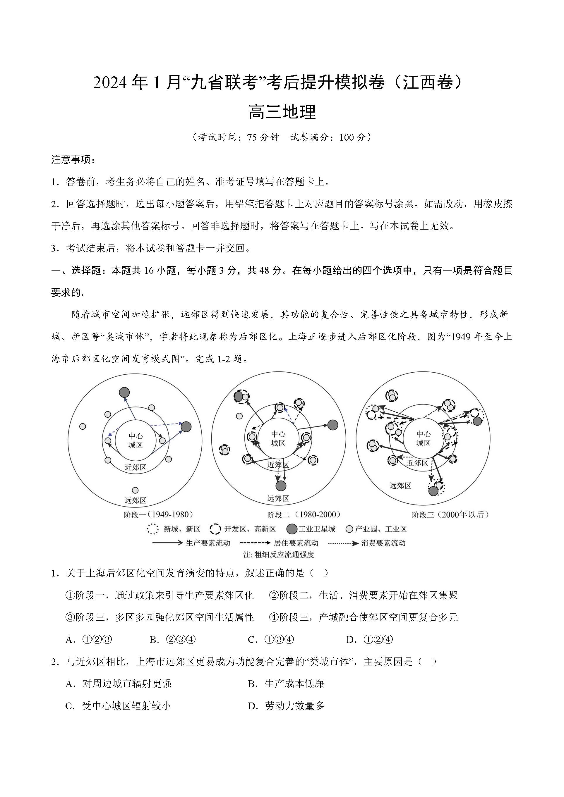 立即下载:2024年1月九省联考考后提升卷地理试题(江西卷)