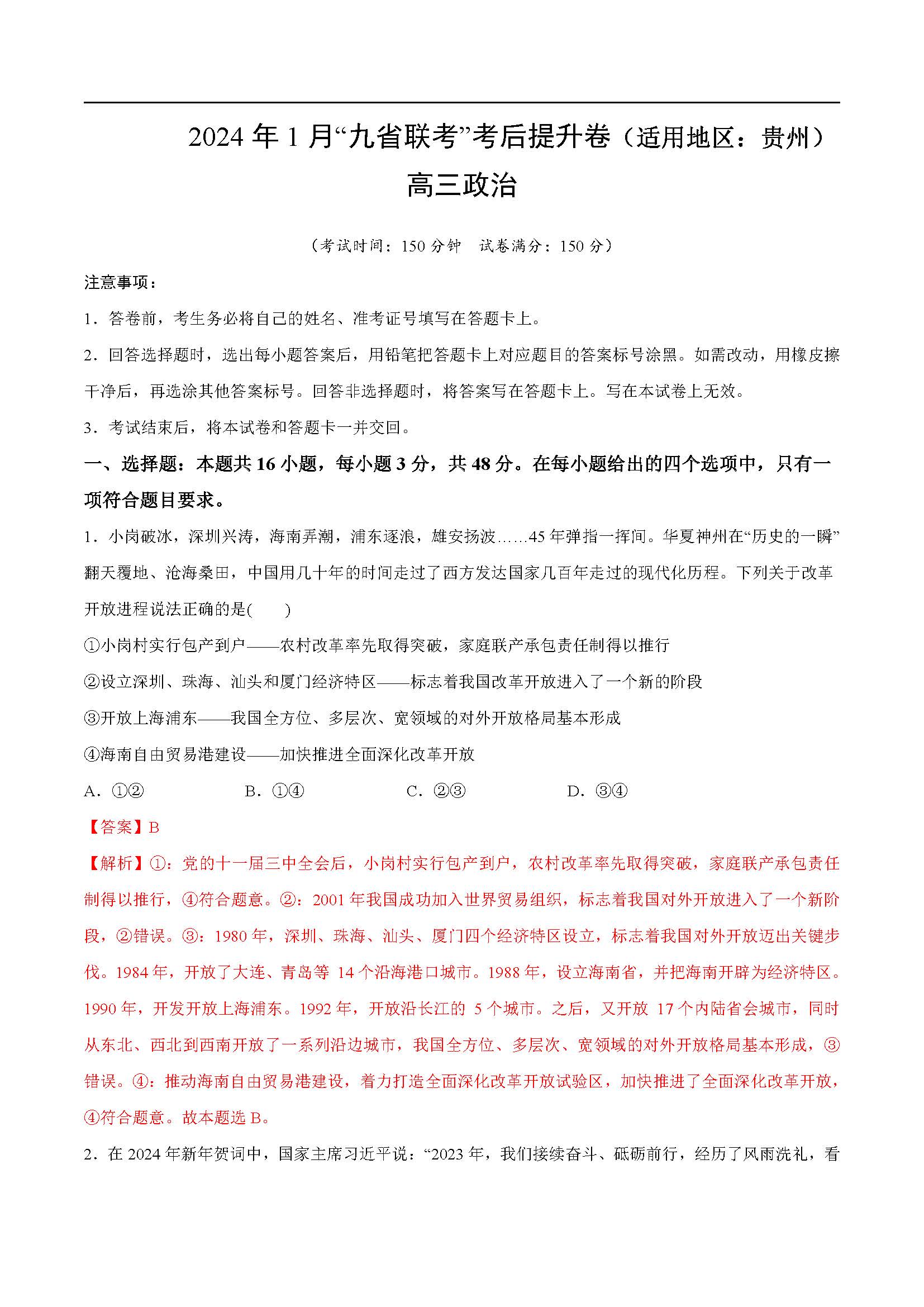 立即下载:2024年1月九省联考考后提升卷政治答案(贵州卷)
