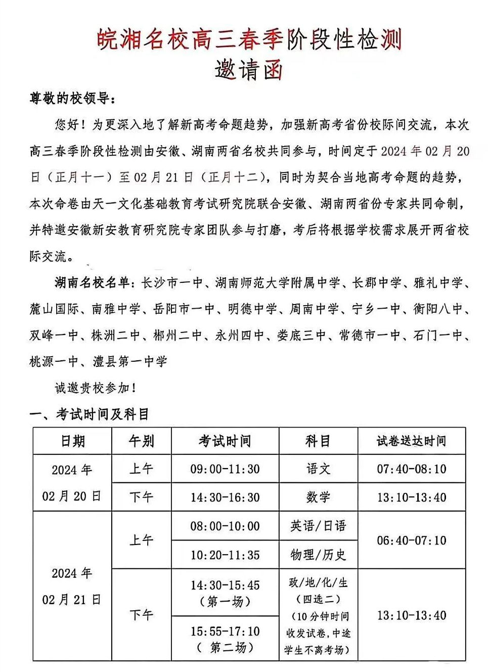 2024天一大联考皖湘名校高三春季阶段性检测试题及答案汇总