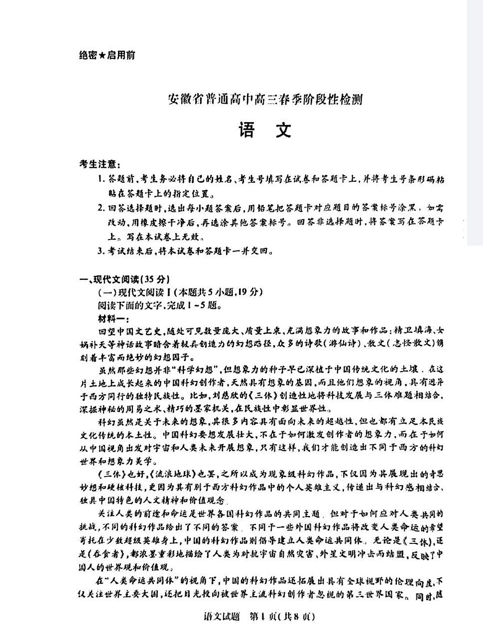 立即下载:2024天一大联考皖湘名校高三春季阶段性检测语文试题及答案