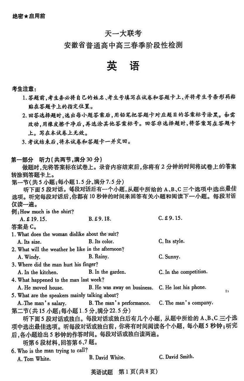 立即下载:2024天一大联考皖湘名校高三春季阶段性检测英语试题及答案