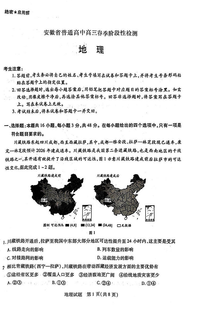 2024天一大联考皖湘名校高三春季阶段性检测地理试题及答案