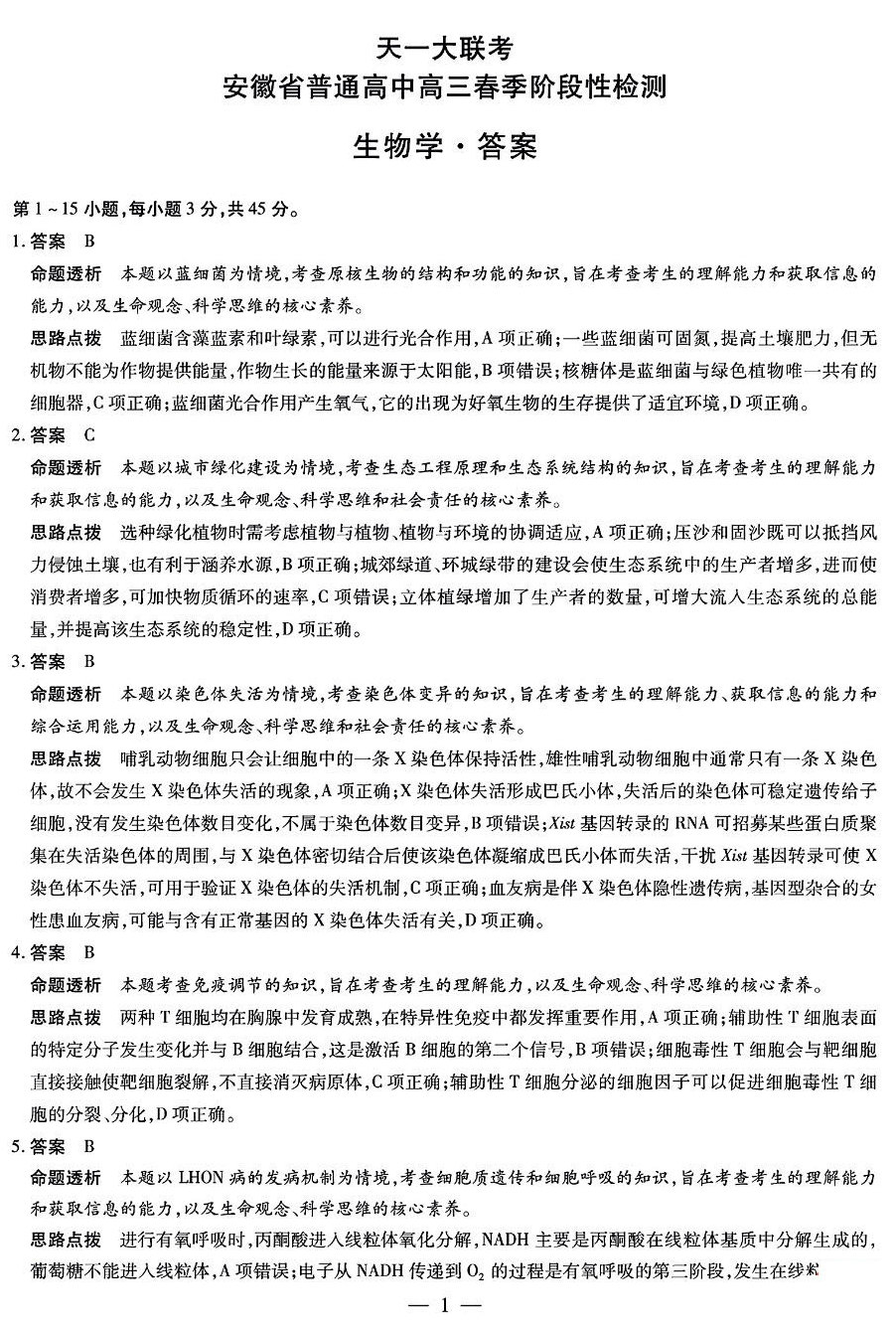 2024年2月20-21日,天一大联考2024天一大联考皖湘名校高三春季阶段性检测如期开考。为方便大家练习本套试题,北京高考在线团队整理了相关试题答案,可下载。