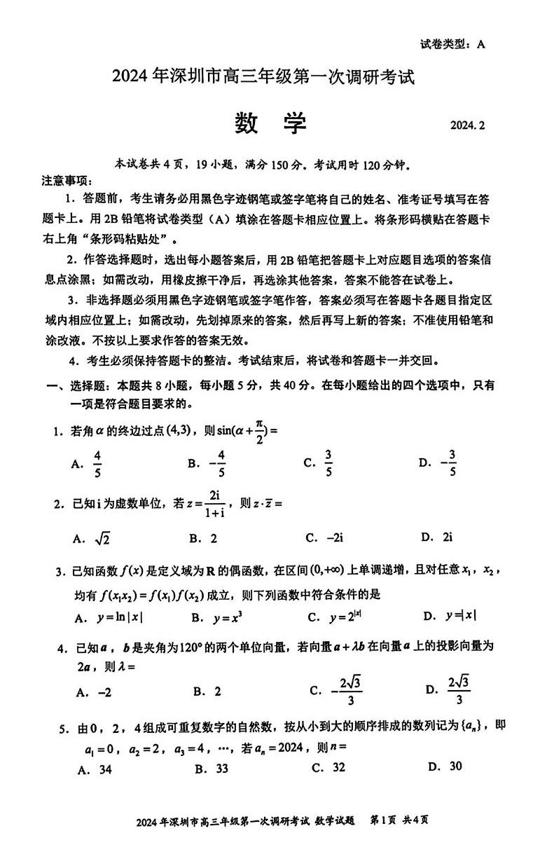 根据安排,2024年广东深圳高三一模定于2月28日-3月1日举行,为方便大家练习本套试题,北京高考在线团队整理了2024年广东深圳一模数学试题及答案,分享给大家下载练习。