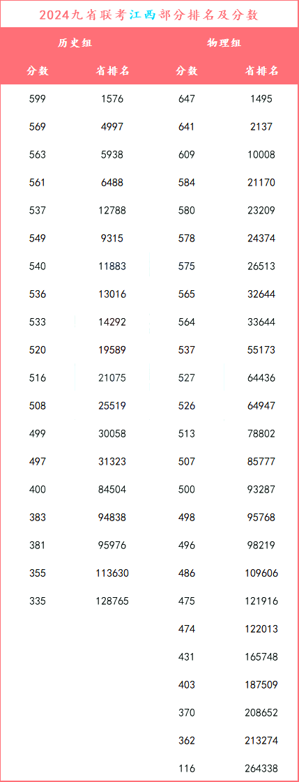 2024新高考七省联考定于2024年1月19日开考,据最新消息,河南、新疆也加入了这次7省联考,也可称为九省联考。本文整理了2024九省联考江西部分排名及分数(非官方数据),仅供参考。